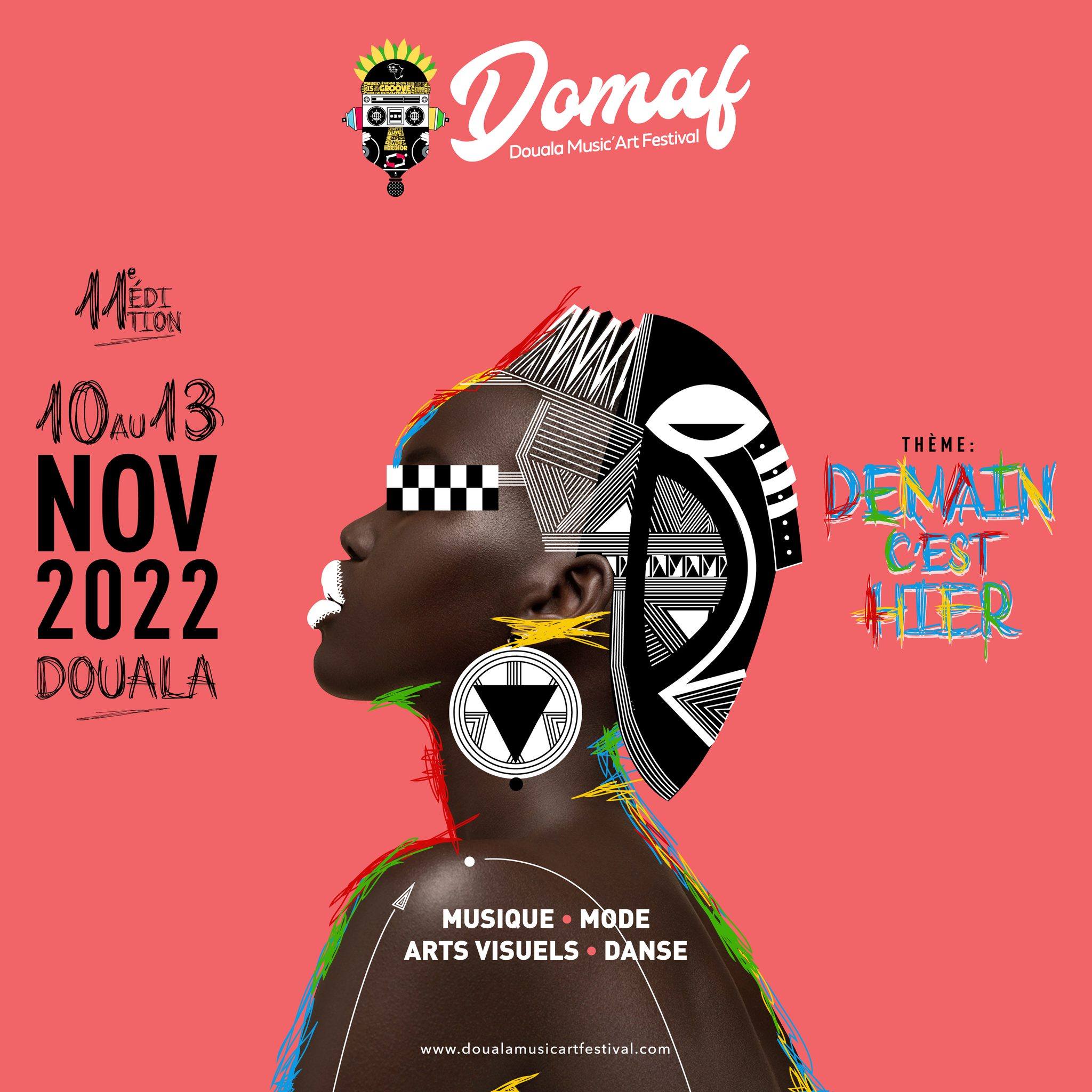 - DEMAIN C’EST HIER ! Laissons parler nos cœurs, Laissons bouger nos corps … La 11e édition du #DOMAF (Douala Music’Art Festival) est là ! MUSIQUE, MODE, DANSE, ARTS VISUELS du 10 au 13 novembre 2022 à Douala.