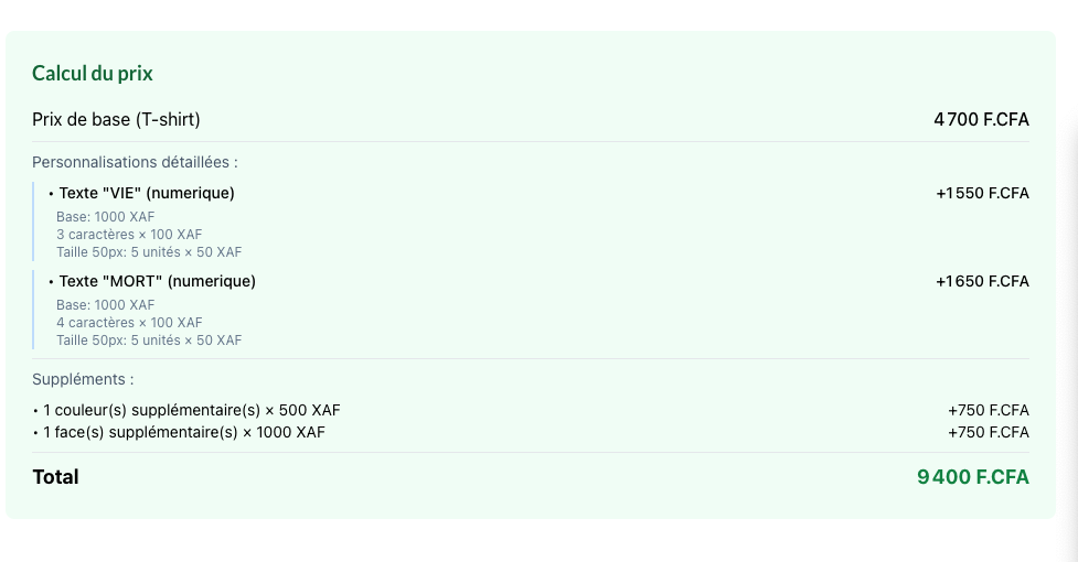 - 1 face(s) supplémentaire(s) × 1000 XAF