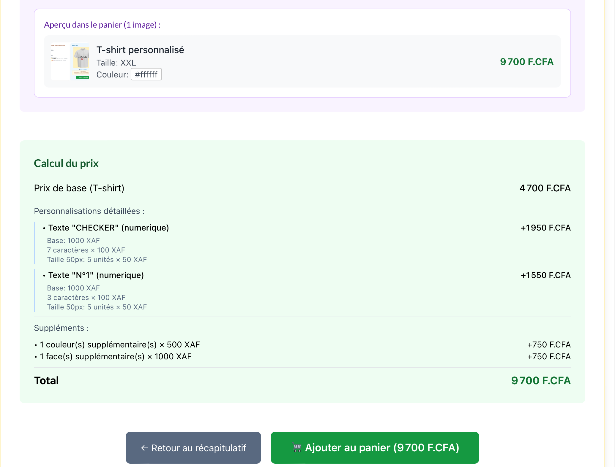 - 1 face(s) supplémentaire(s) × 1000 XAF