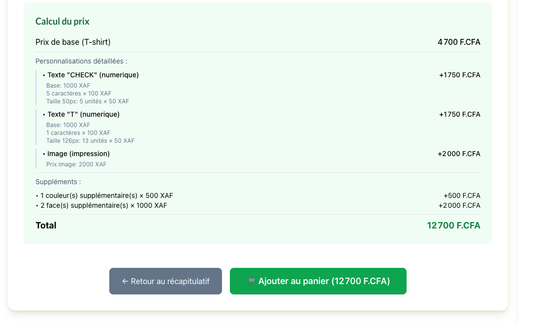 - 2 face(s) supplémentaire(s) × 1 000 XAF