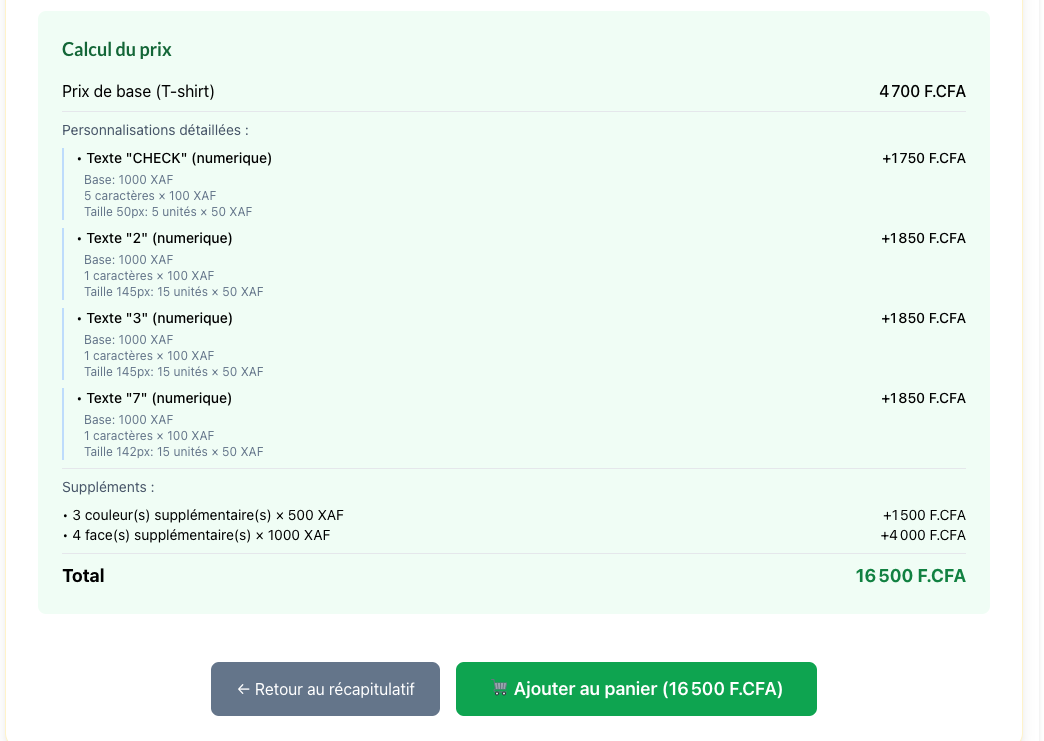 - 4 face(s) supplémentaire(s) × 1 000 XAF