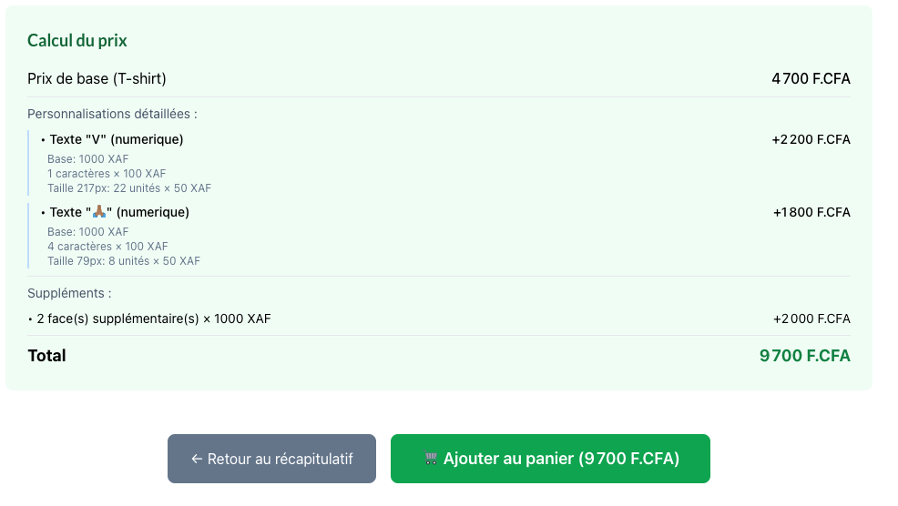 - 2 face(s) supplémentaire(s) × 1 000 XAF